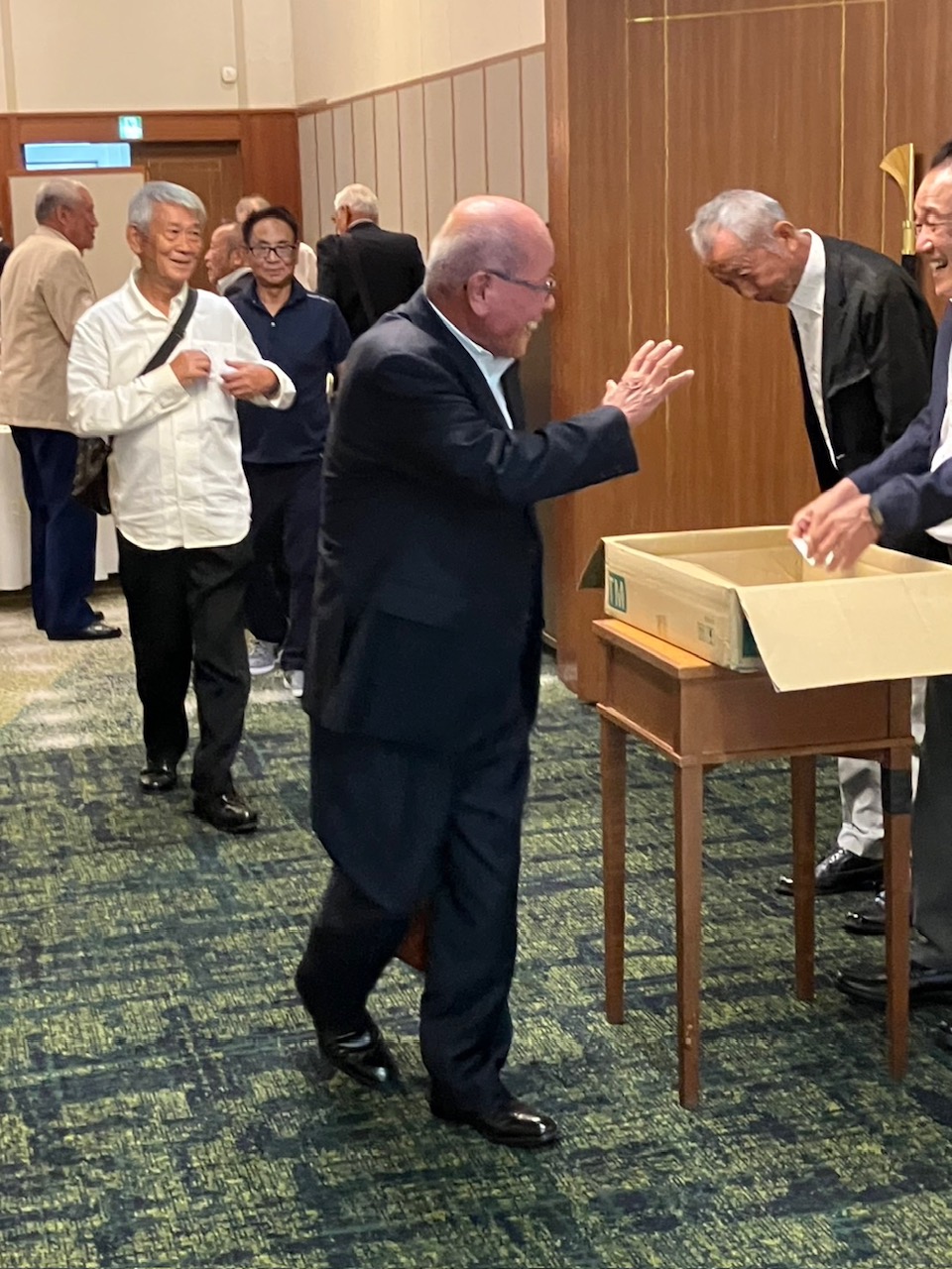 また、懇親会では総勢77名コカ・コーラで乾杯の後、美味しい田苑や熊本ワインを飲みながら、厳しい中にも楽しかった懐かしい現役時代のこと、今の暮らしのことなど話題は尽きず大いに盛り上がりました。途中、本坊幸吉基金の活動賞の表彰、喜寿を迎えた方々へのお祝い金の贈呈があり、宮崎の村上支部長の中締めで幕を閉じました。